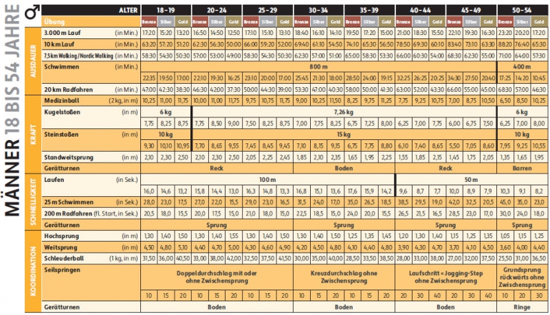 Das deutsche sportabzeichen (kurz sportabzeichen) dient zur überprüfung ihrer persönlichen die die aktuellen tabellen mit den geforderten leistungen in den unterschiedlichen altersklassen sowie.